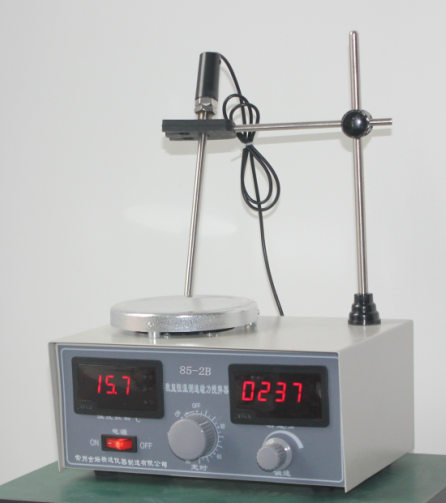 85-2B双数显磁力加热搅拌器采用直流电机,噪音小,调速平稳,全封闭式加热盘可作辅助加热之用。可设定温度及温度显示,数显直观准确。由聚四氟乙烯和磁钢精制成的搅拌子,耐高温、耐磨、耐化学腐蚀、磁性强。可在密闭的容器中进行调混工作,使用十分理想与方便。